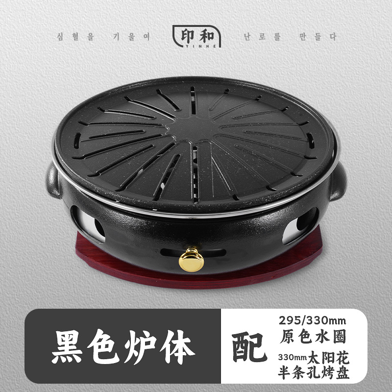 黑色--原色水圈【配330不锈钢太阳花带孔烤盘】德国技术 透出炭火 烤肉香