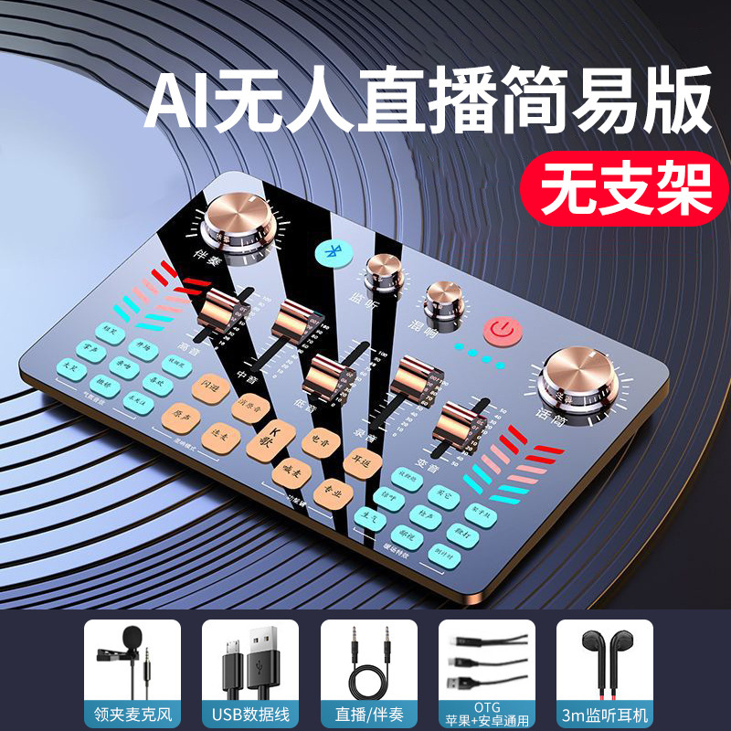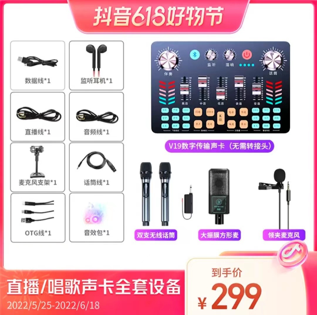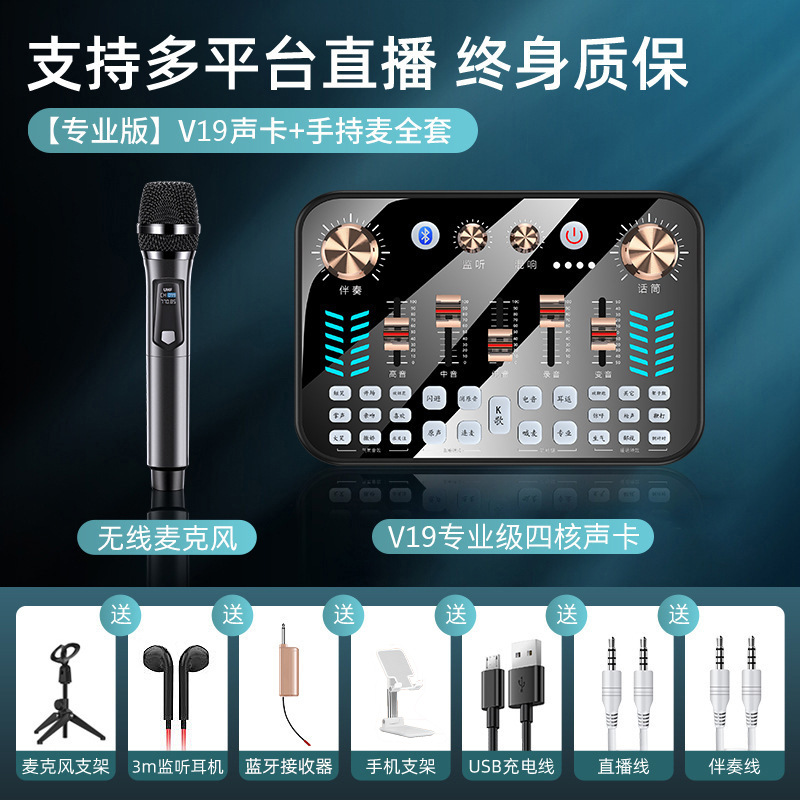 【旗舰款】V19声卡+无线麦+声卡配件全套★免调试