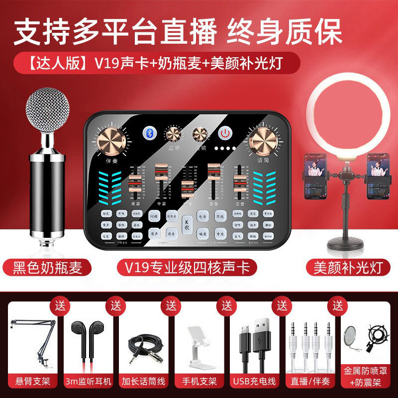 【专业款】V19声卡+奶瓶麦+声卡配件全套+桌面补光灯
