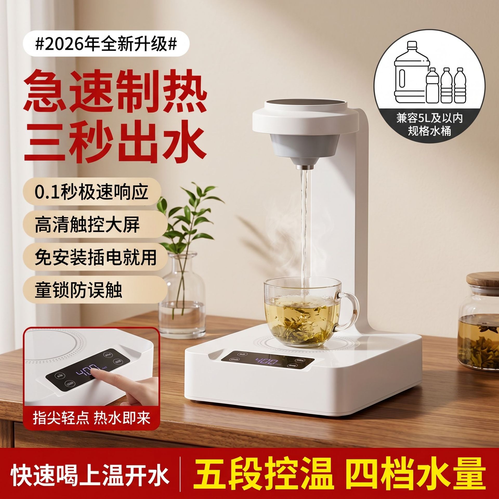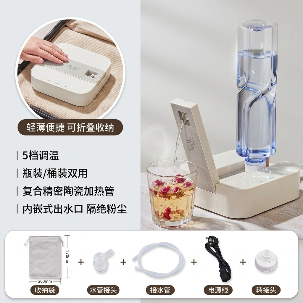 白色水杯式【秒速热*5档温控*插瓶/接桶两用】
