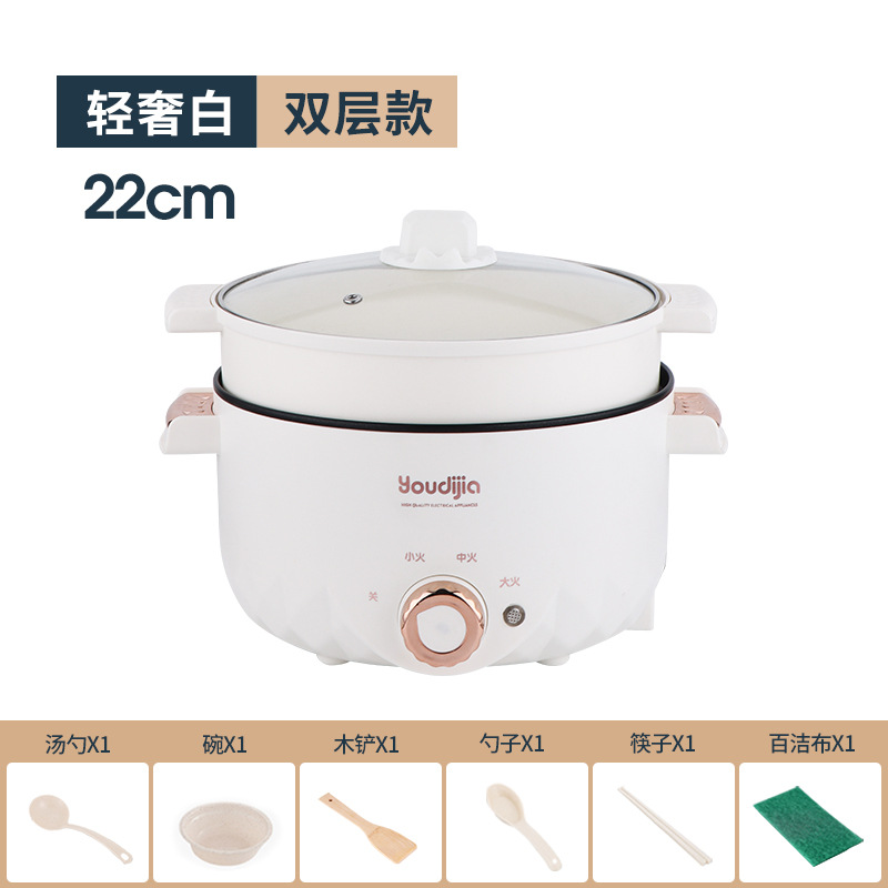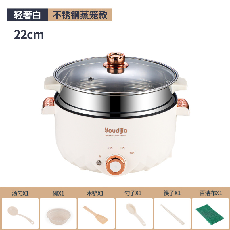 新款白色22CM不粘锅+不锈钢蒸格