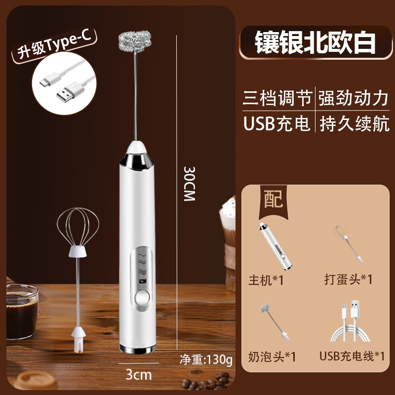 J-3 白色 双搅拌头(跨境爆款,升级Type-C)