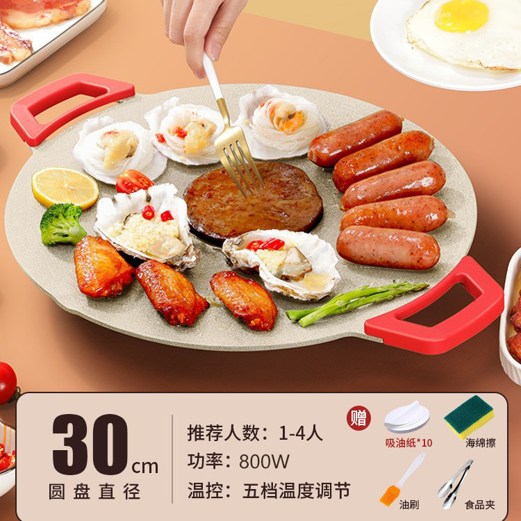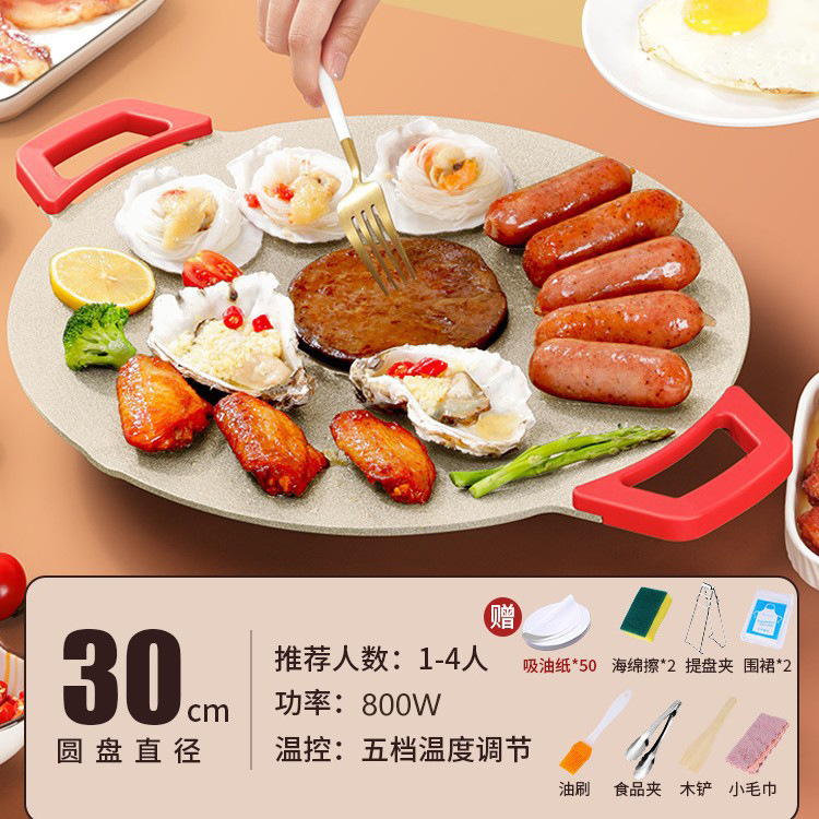 麦饭石烤肉盘【30CM适用2-6人】送4件套-吸油纸*10