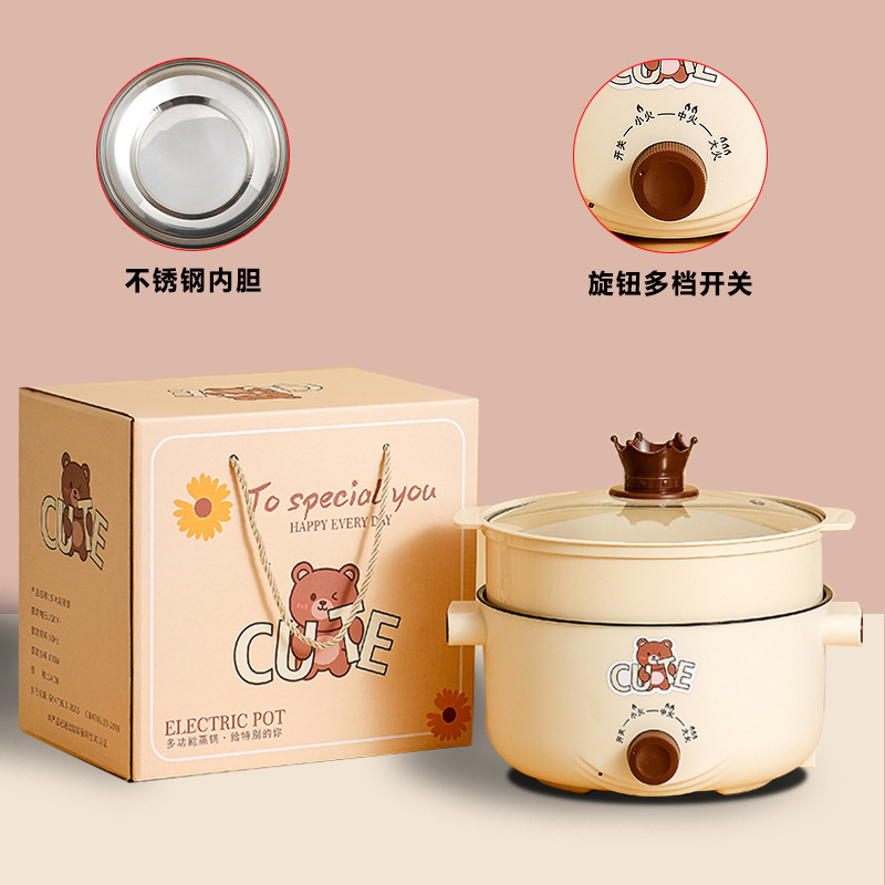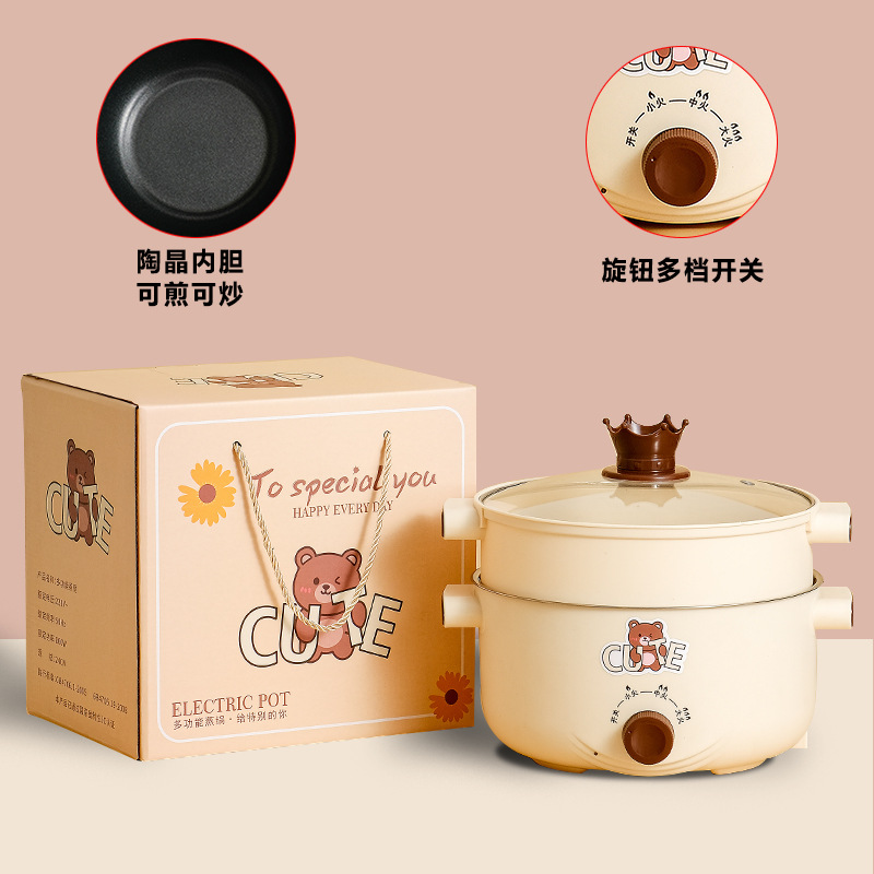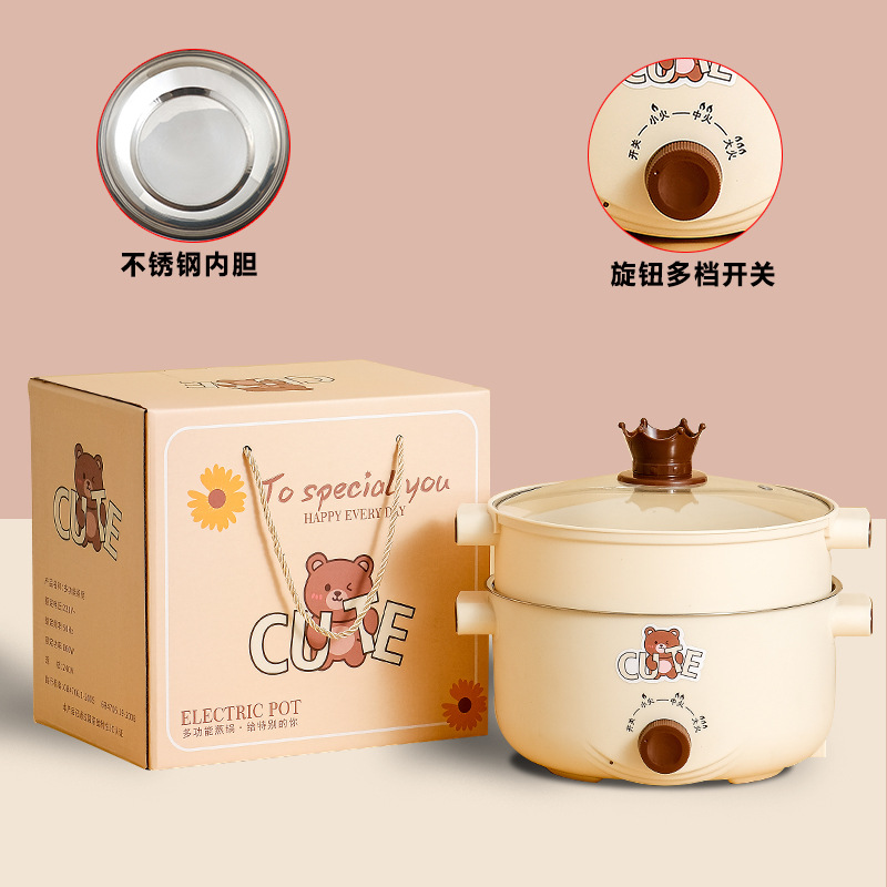 18小熊电煮锅不沾+不锈蒸笼+礼盒