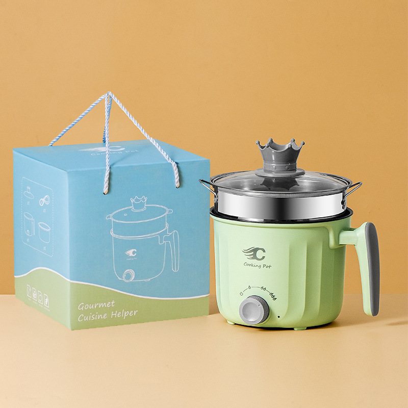 18旋钮绿色不粘电煮锅+蒸笼-礼盒装