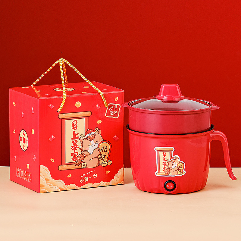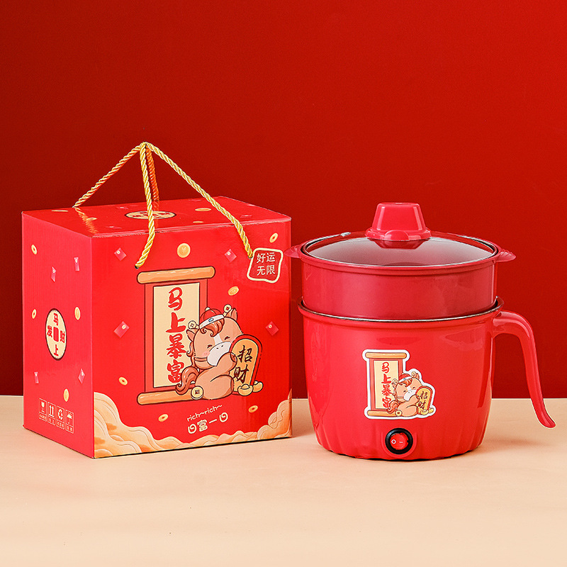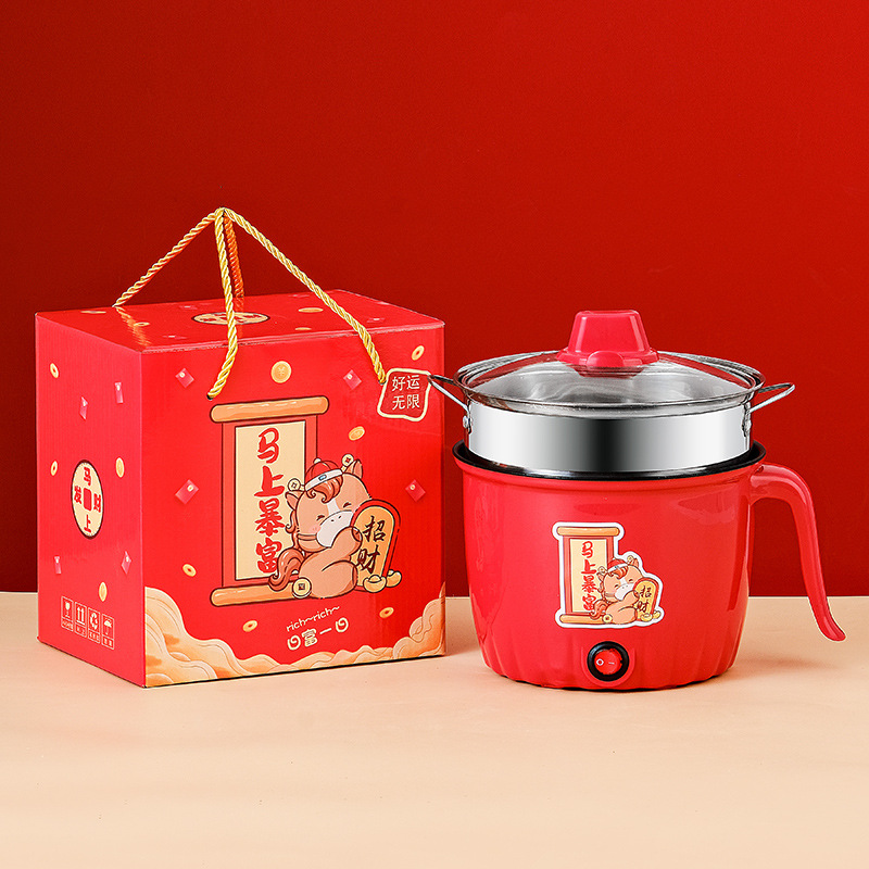 金蛇接财电煮锅 不粘+蒸笼+礼盒