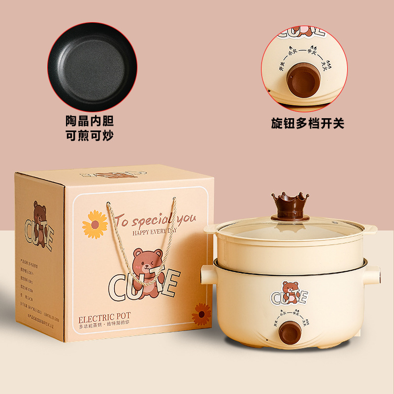 18小熊电煮锅不沾+蒸笼+礼盒
