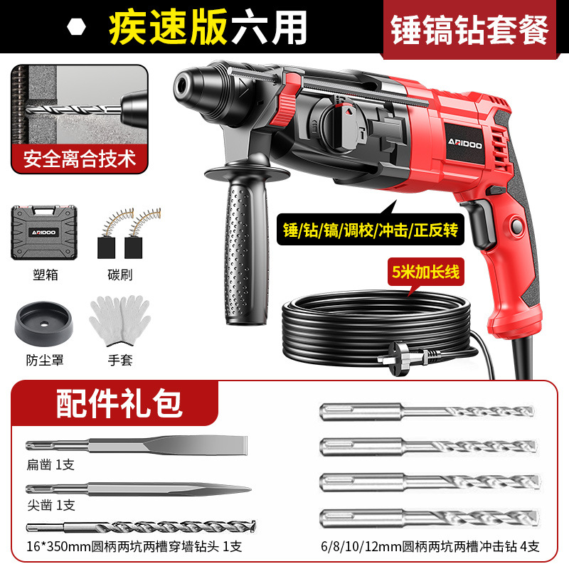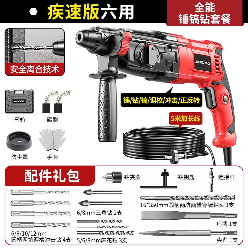 疾速版六用(锤/钻/镐/调校/冲击/正反转)全能锤镐钻套餐
