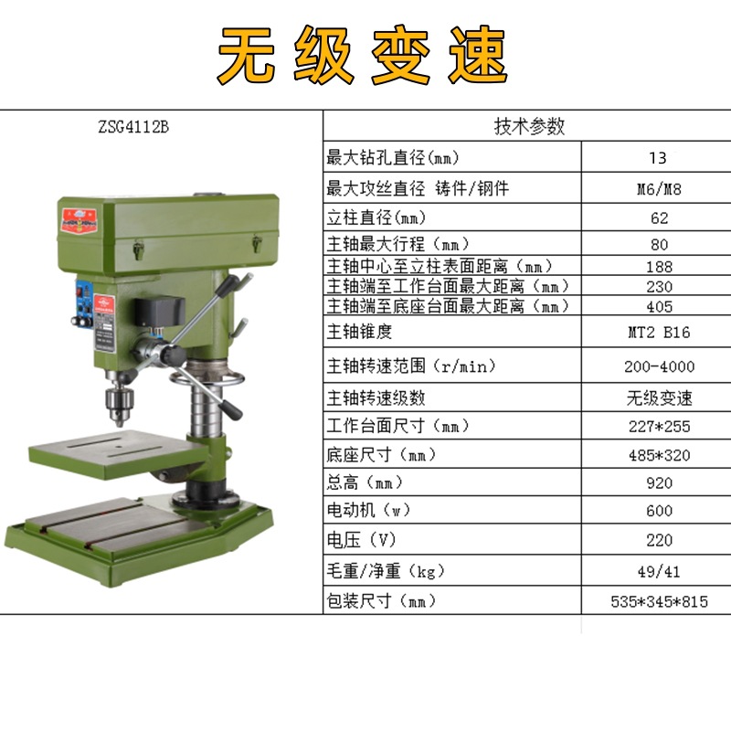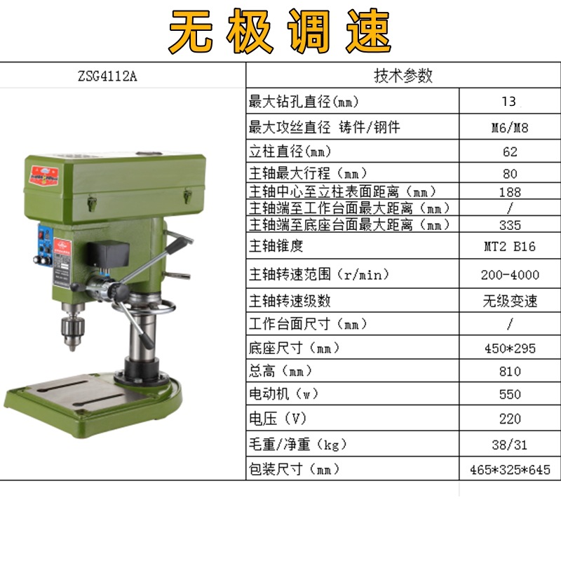 钻孔攻丝ZSG4112B/单相220V+铜550W 无极调速