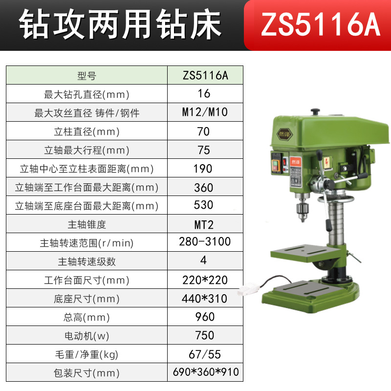 钻孔攻丝ZS5116A/220V+铜750W 送4寸平口钳