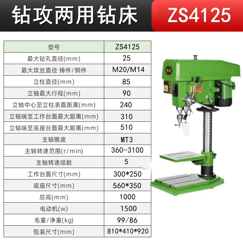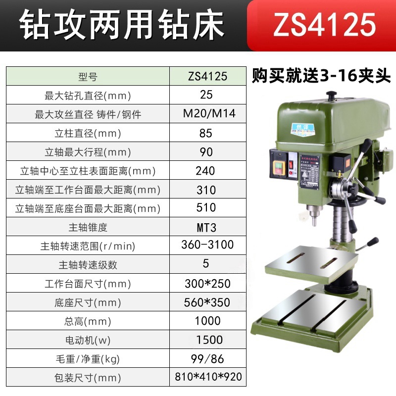 钻孔攻丝ZS4125/三相380V+铜1500W 送4寸平口钳