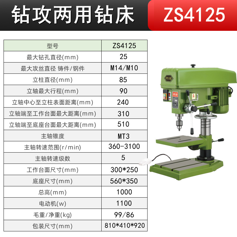 钻孔攻丝ZS4125/220V+铜1100W 送4寸平口钳
