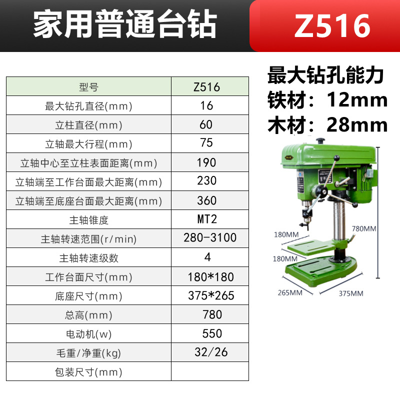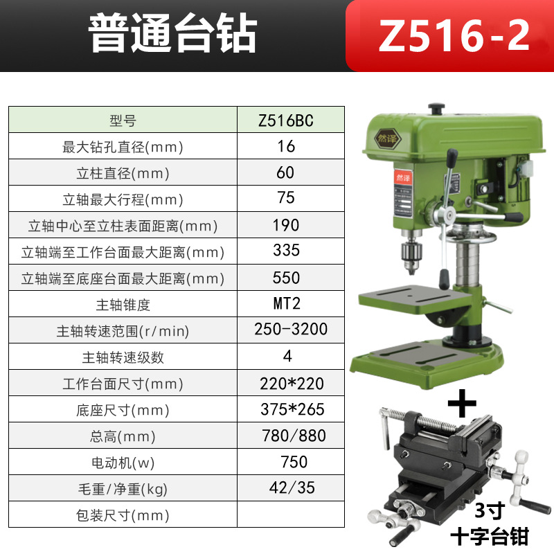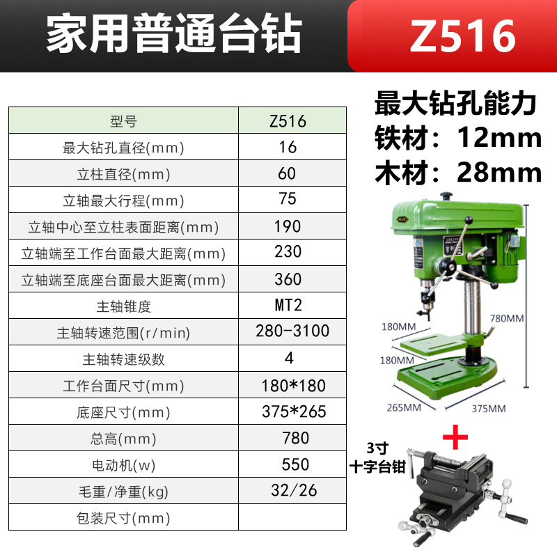 Z516/单相220V+铜芯550W+3寸十字台钳 轻型款