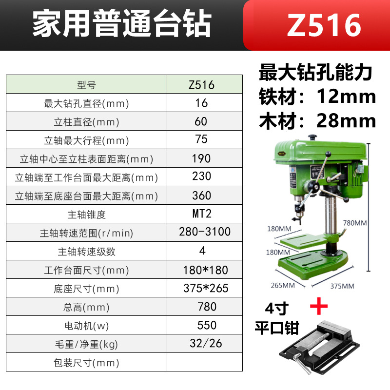 Z516/单相220V+铜芯550W+4寸平口钳 轻型款