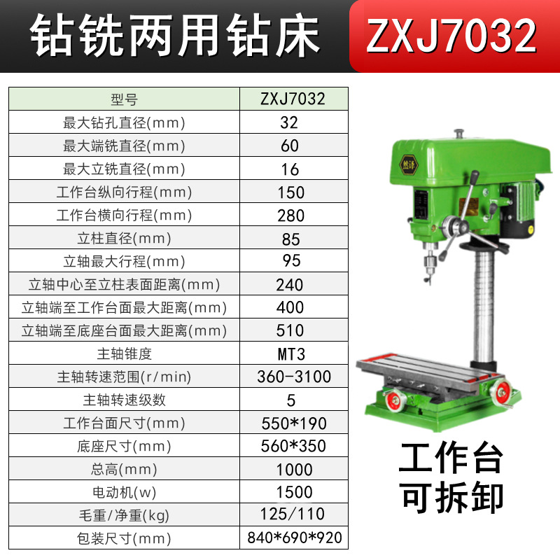 钻攻铣三用ZSX7032/380V+铜1500W 送4寸平口钳