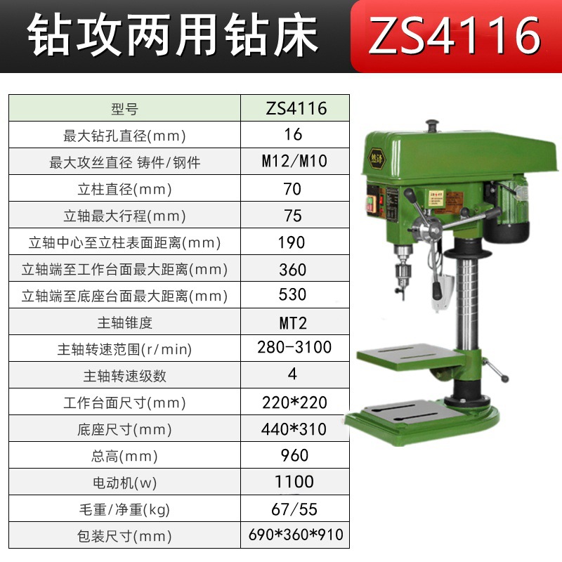 钻孔攻丝ZS5116A/380V+铜750W 送4寸平口钳