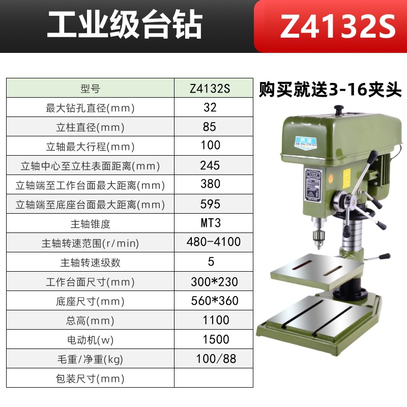 钻孔攻丝ZS4132/220V+铜1500W 送4寸平口钳