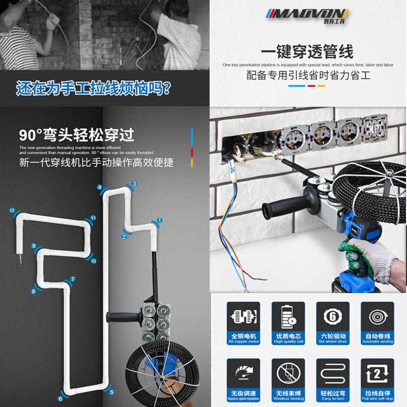 无刷6轮穿线机30米【10节电池】单电