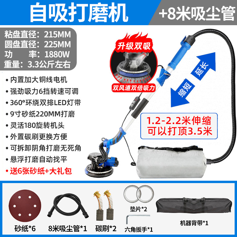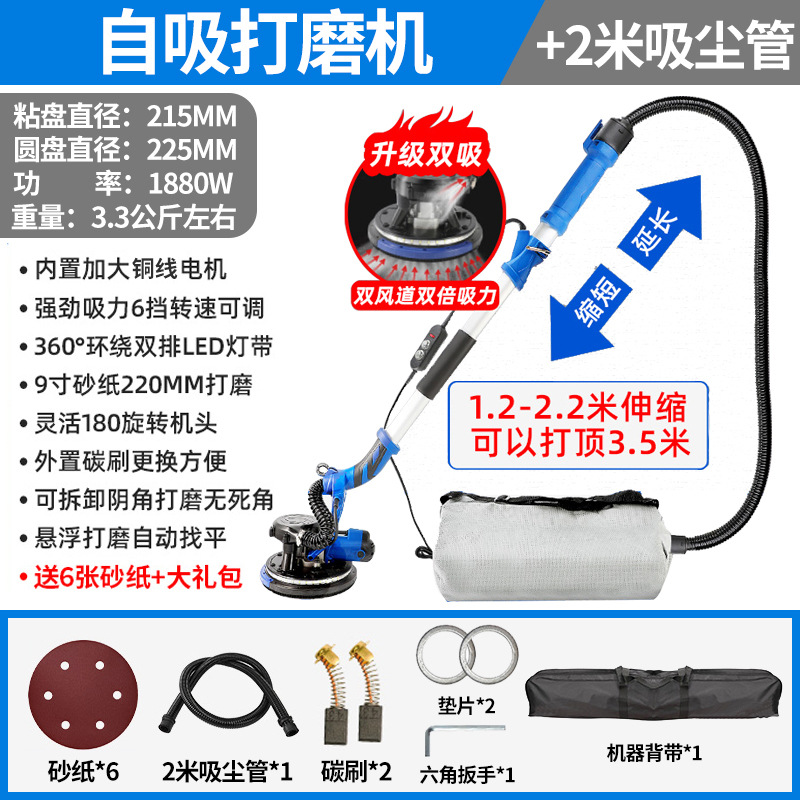 1880W双管吸尘3.5米触高可六档调速+8米吸尘管+6张砂纸