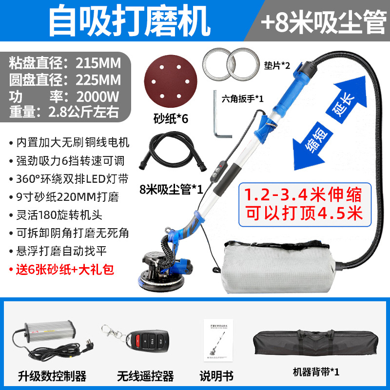 2000W永磁电机4.5米触高可远程遥控+8米吸尘管+6张砂纸