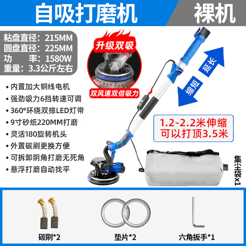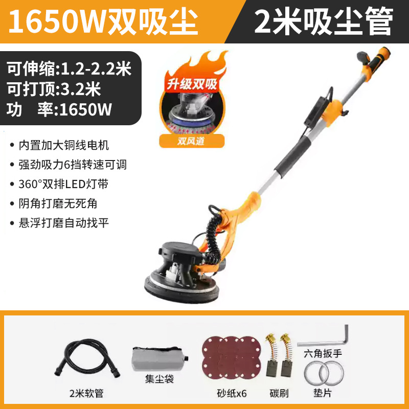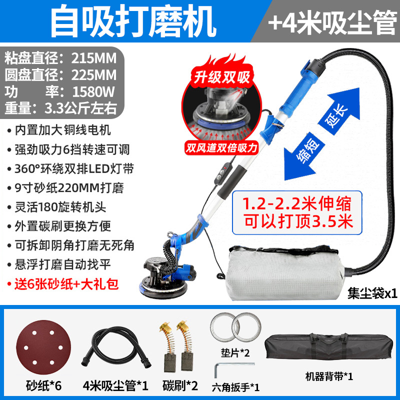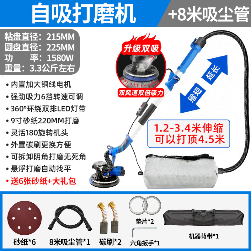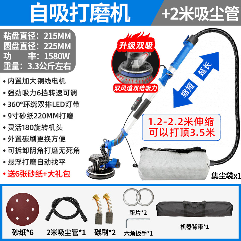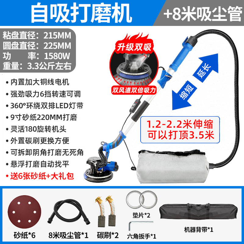 1580W双管吸尘4.5米触高可六档调速+8米吸尘管+6张砂纸
