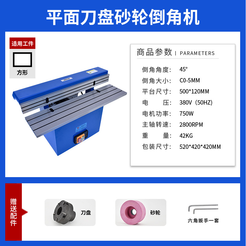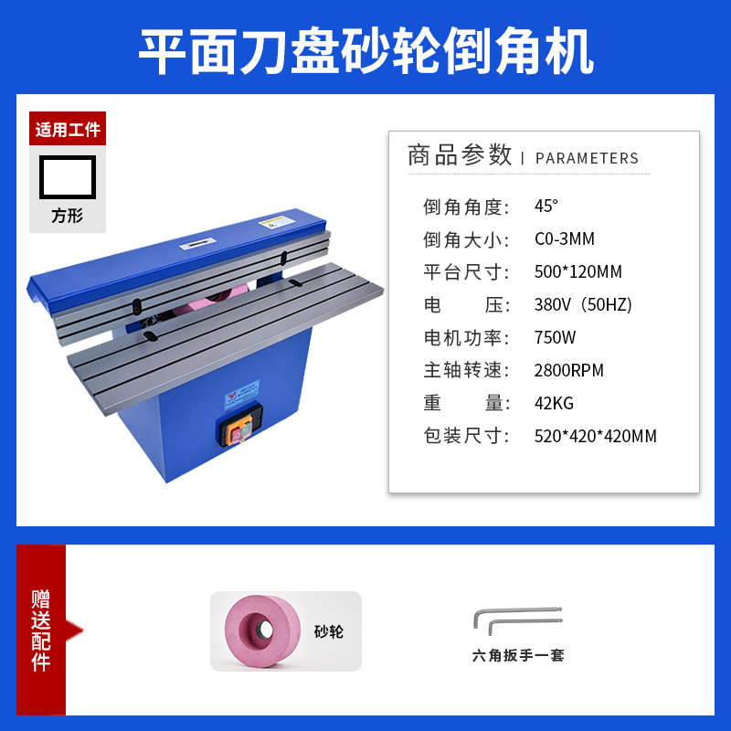 平面刀盘砂轮互换倒角机 45°角