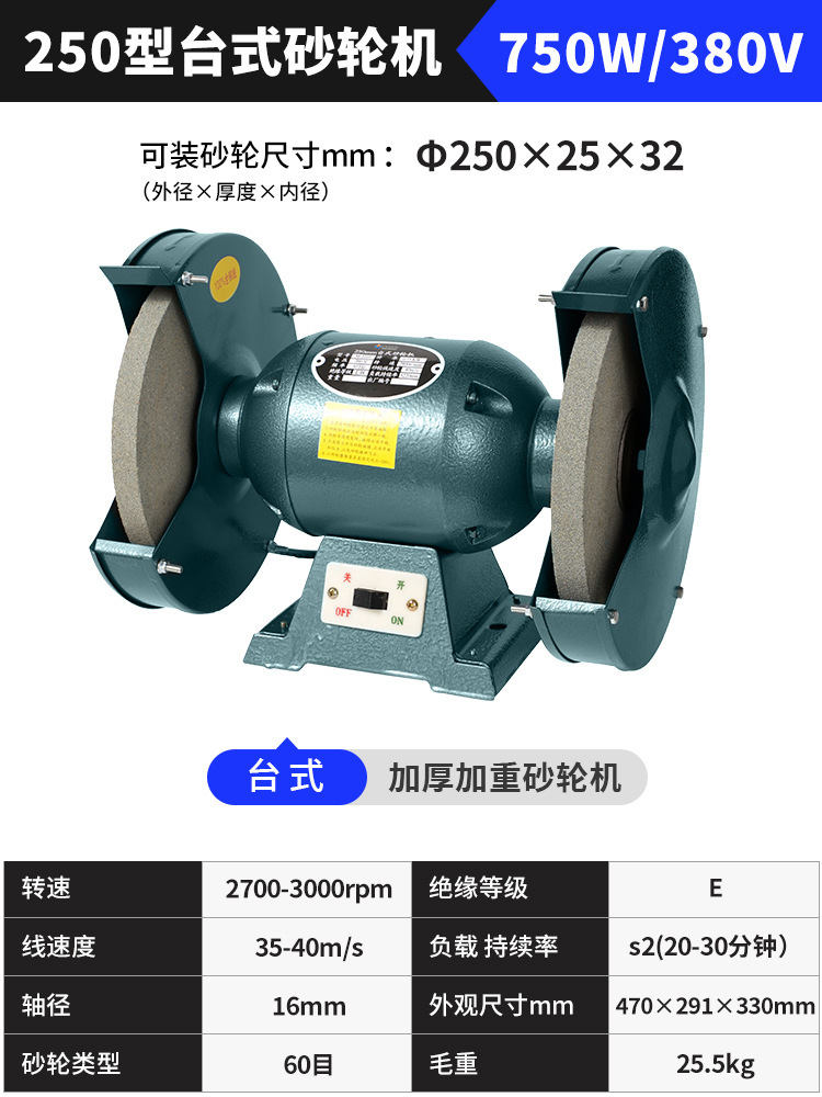 250重型台式砂轮机1.1/380v【高速】