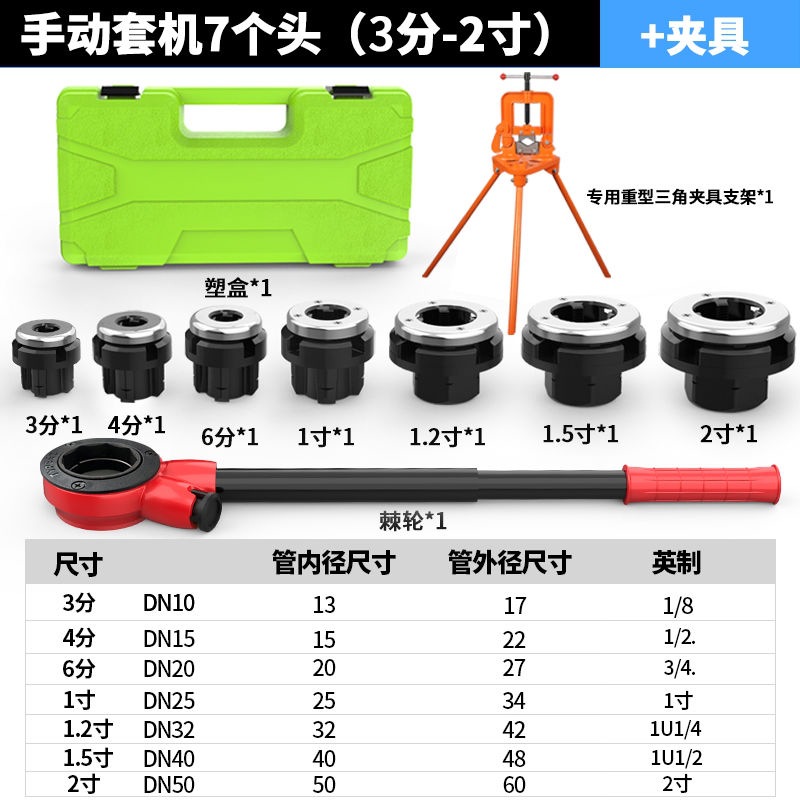 7个头【3分-2寸9sicr板牙】_标配+夹具+割刀