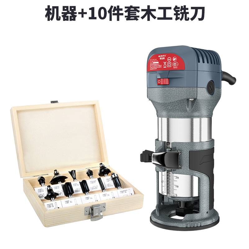 600W木工修边机+圆底座+10件套铣刀