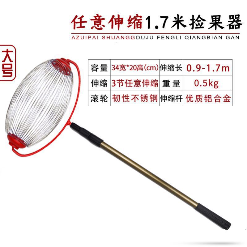 F33-1.7m伸缩不锈钢杆小号拾果器