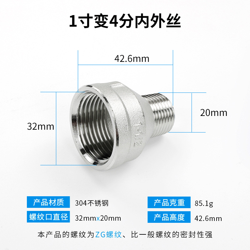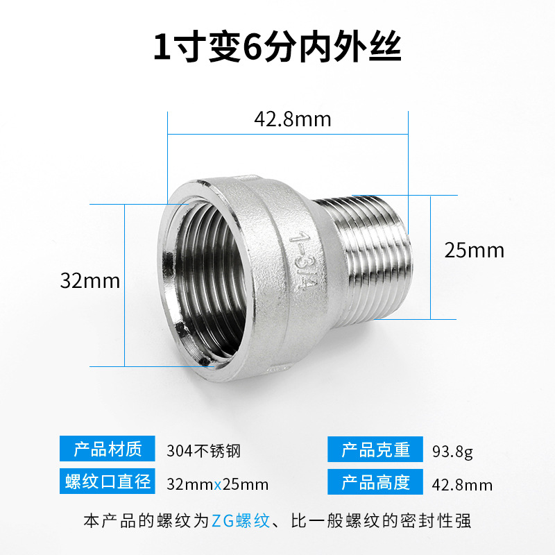 【304材质】1寸转6分内外丝