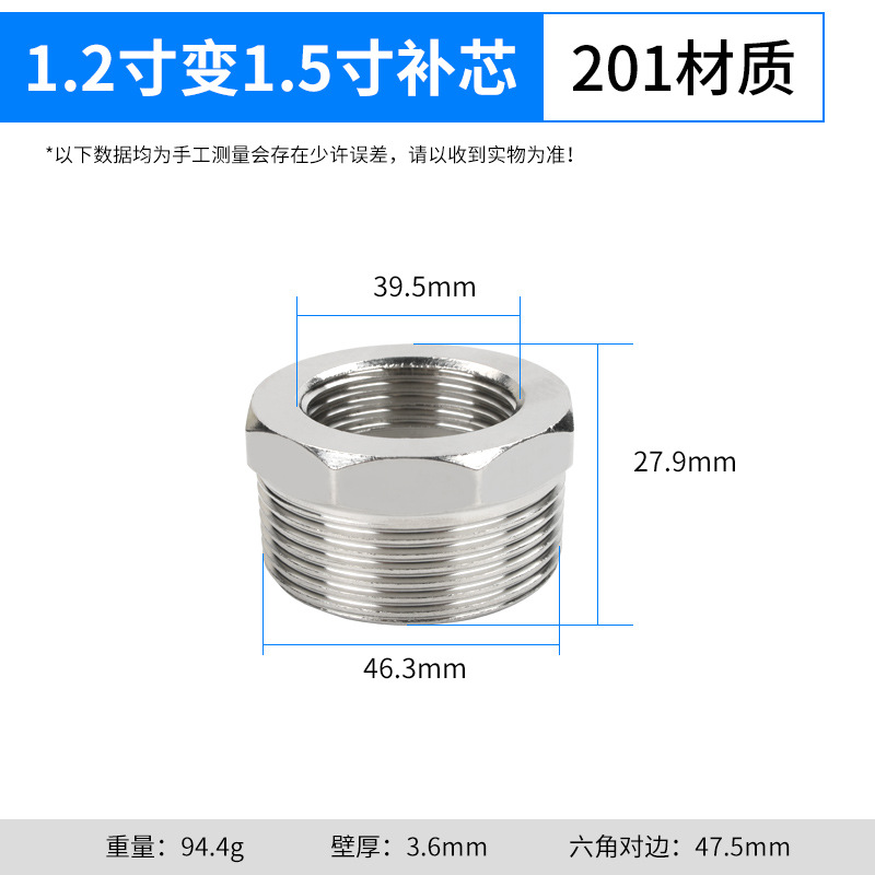 【201材质】1.5寸转1.2寸补芯
