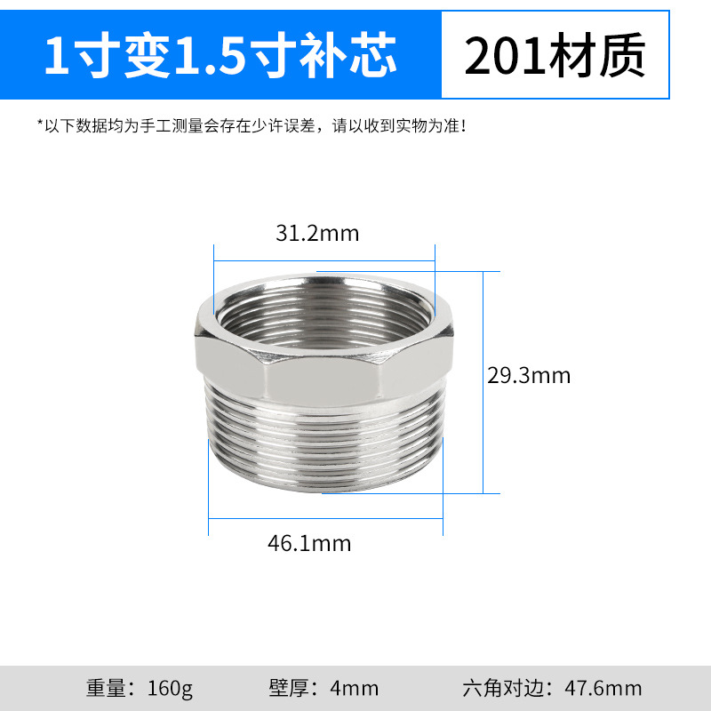 【201材质】1.5寸转1寸补芯