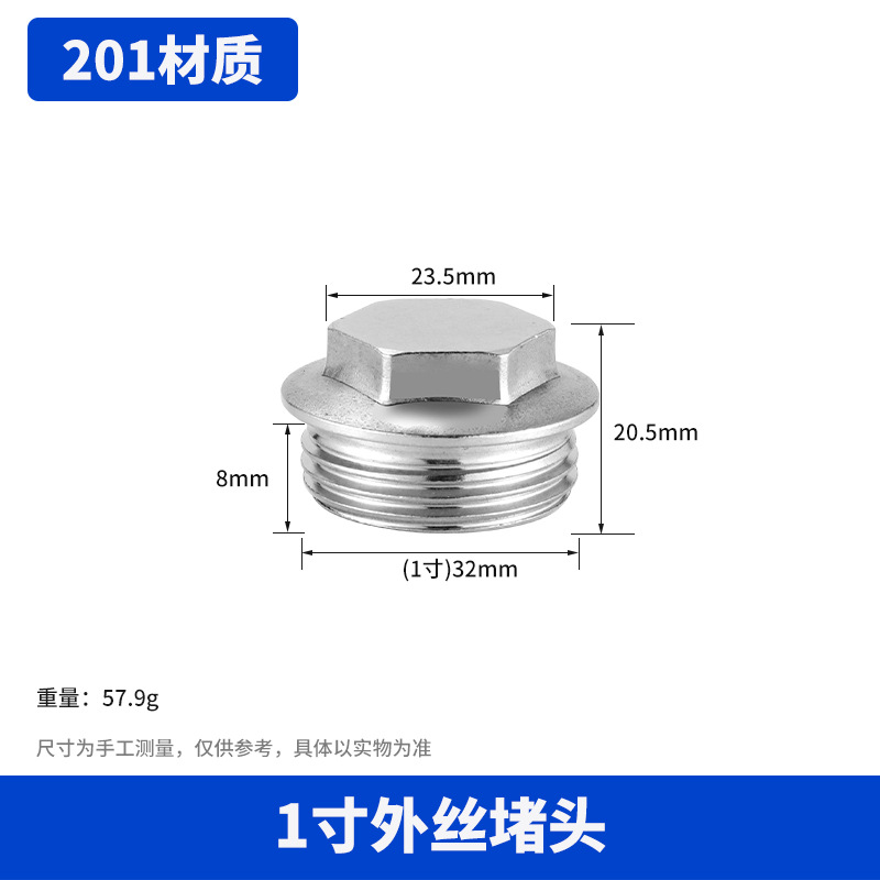 【201材质】1寸外丝堵头