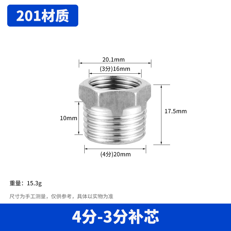 【201材质】6分转4分补芯