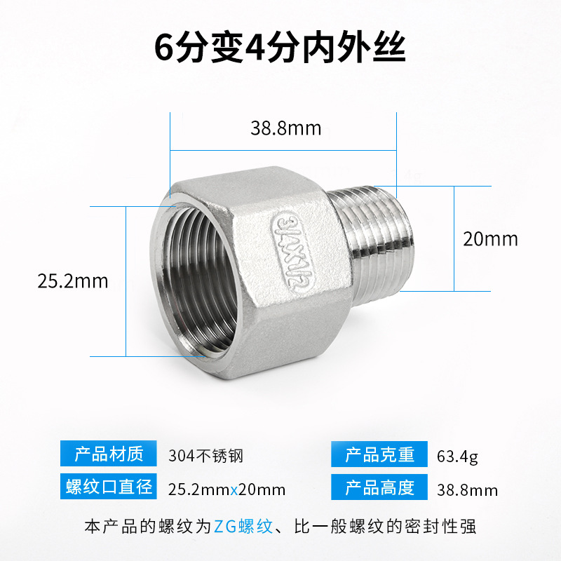 【201材质】6分转4分内外丝