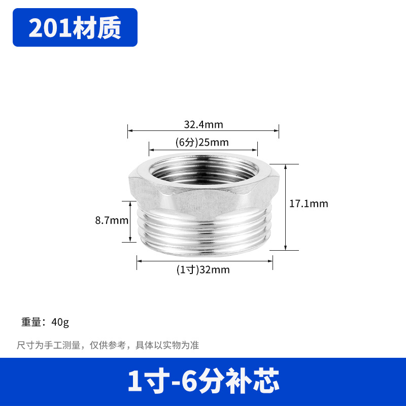 【201材质】1寸转6分补芯