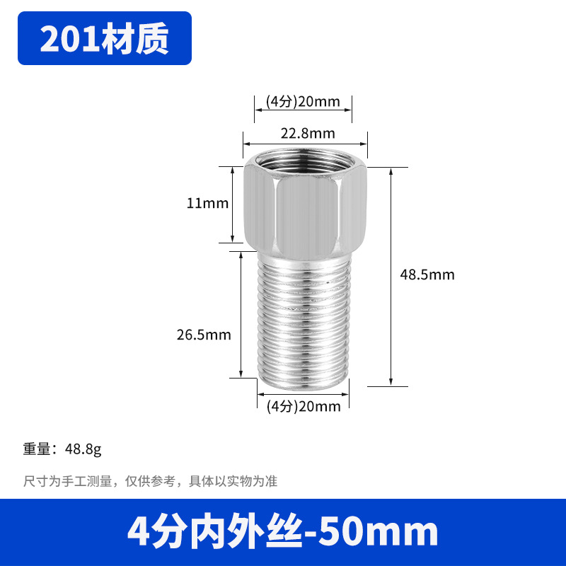 【201材质】4分内外丝总长50mm