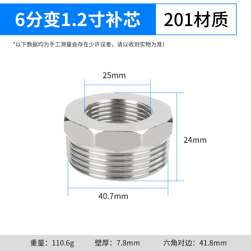 【201材质】1.2寸转6分补芯