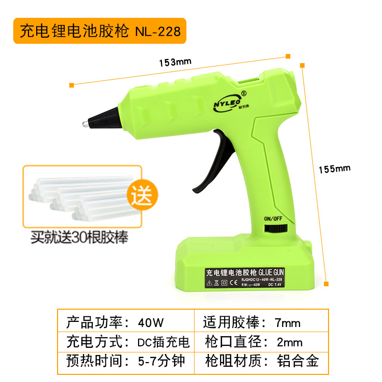 228绿色40W 锂电池充电胶枪+30根胶棒(美规插头)