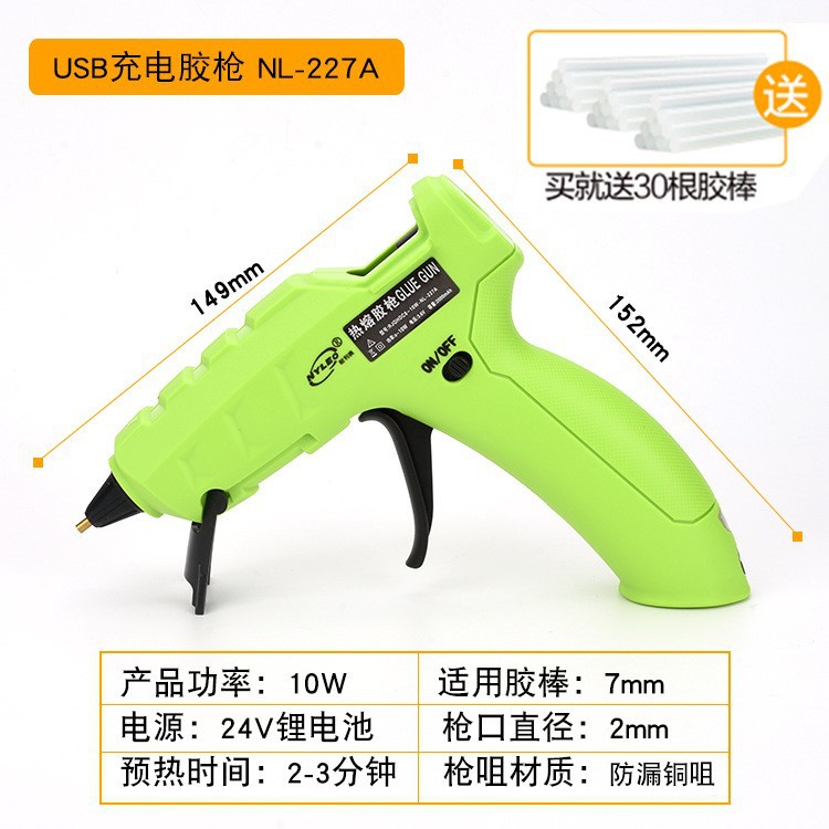 227A绿色 USB锂电池充电胶枪+30根7mm胶棒