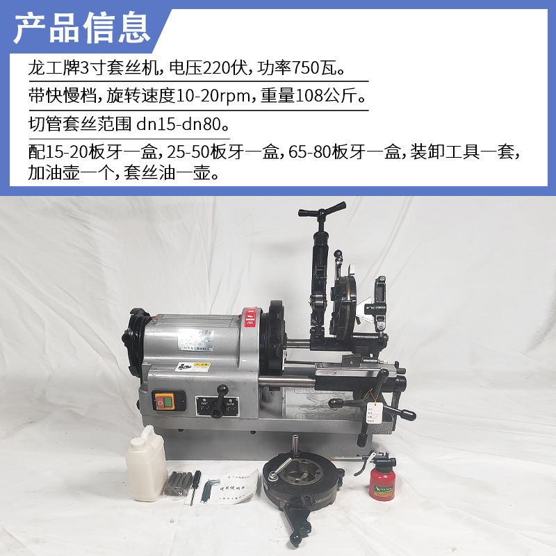 龙工牌三寸220伏750瓦双速套丝机