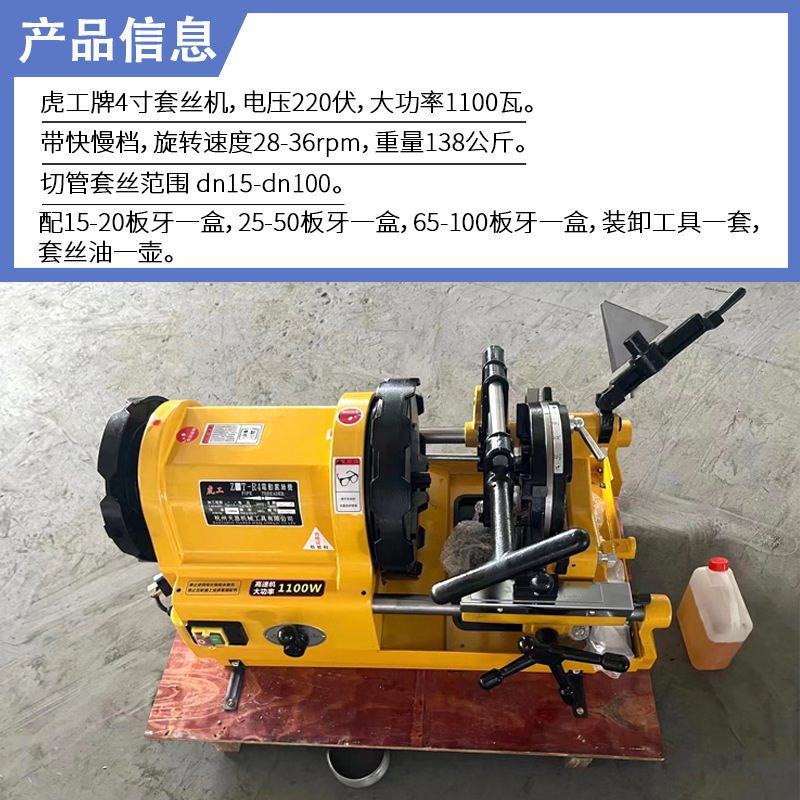 虎工牌4寸220伏1100瓦双速高效套丝机