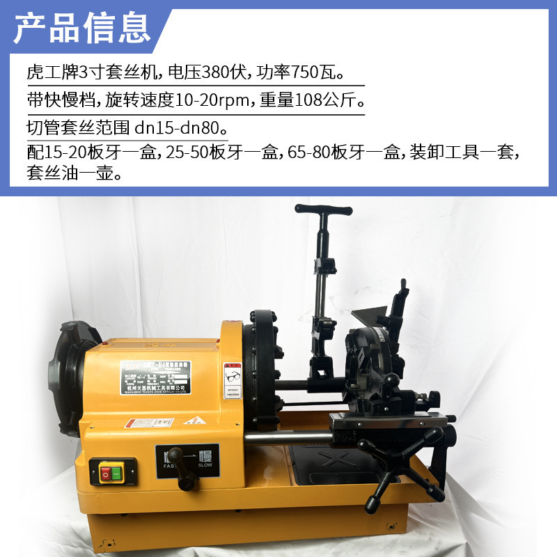 虎工牌3寸380伏750瓦双速套丝机