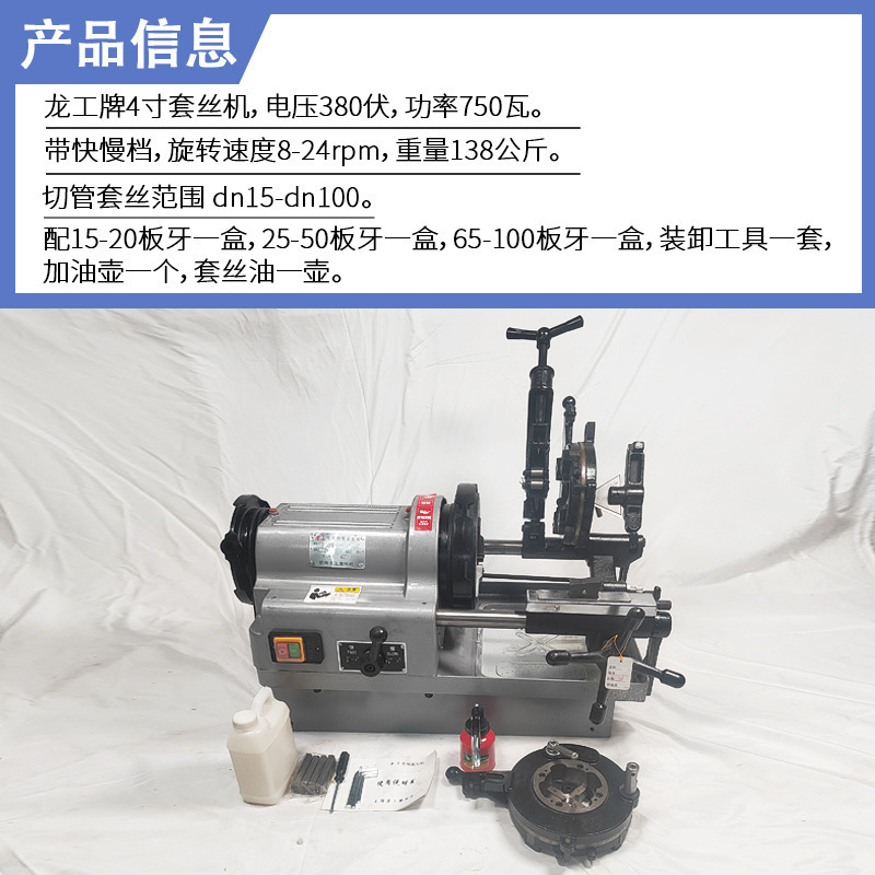 龙工牌4寸220伏750瓦双速套丝机