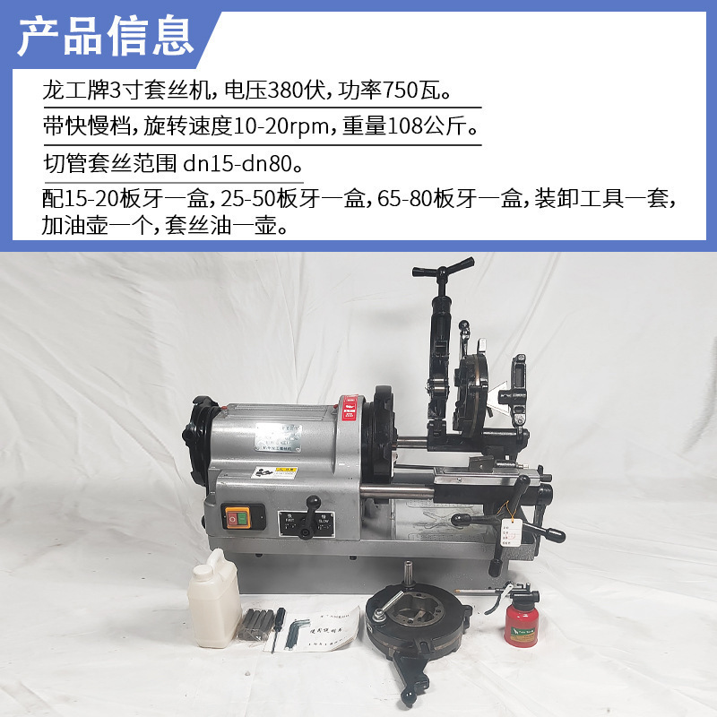龙工牌三寸380伏750瓦双速套丝机