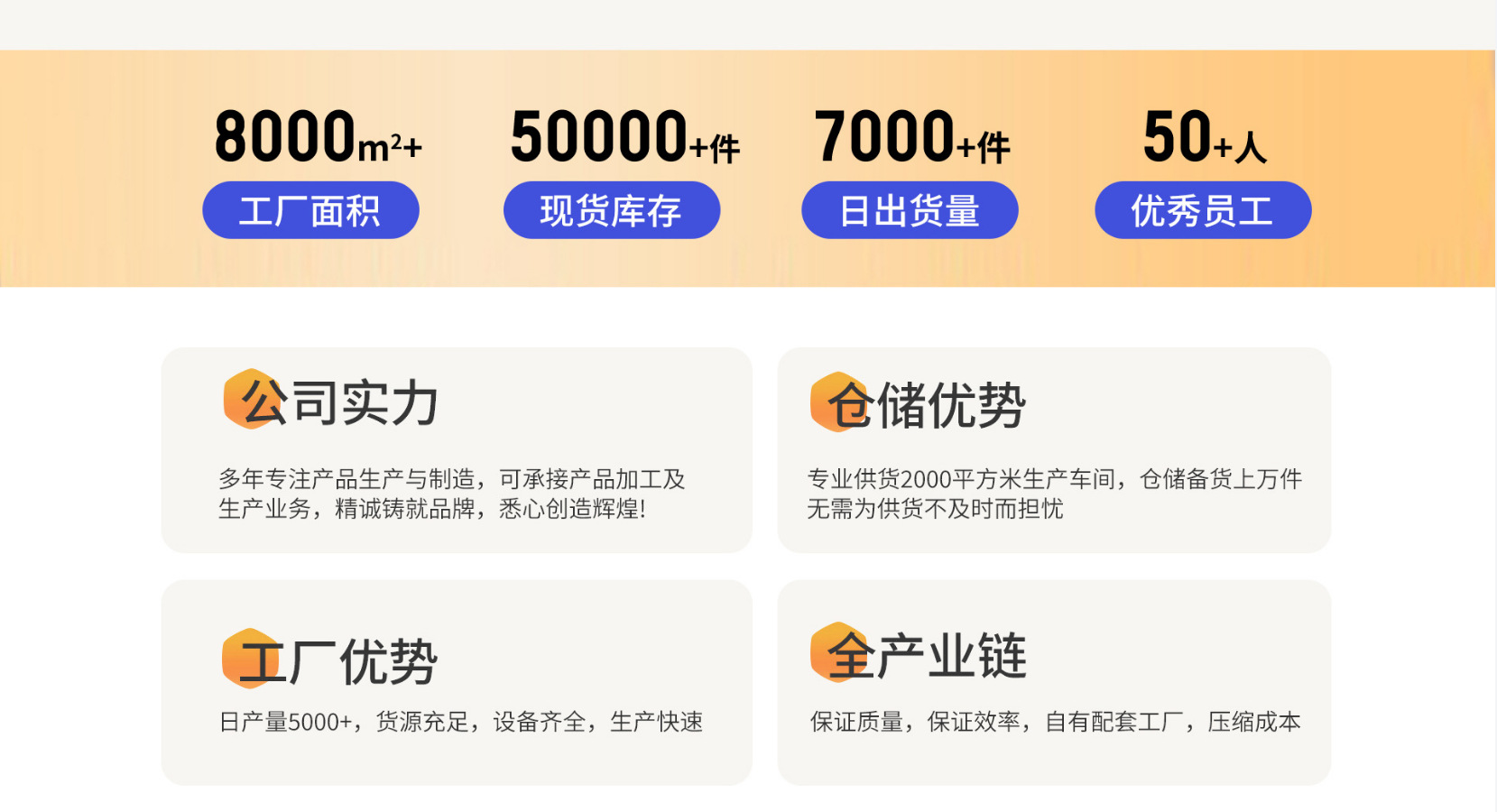 Our company is an integrated production and processing enterprise that produces and sells its own products. We guarantee the quality of our products, which are rich in variety. We provide products for live streaming group purchases, e-commerce platforms, micro-business agents, event orders, wholesale and retail. Welcome to choose and purchase.