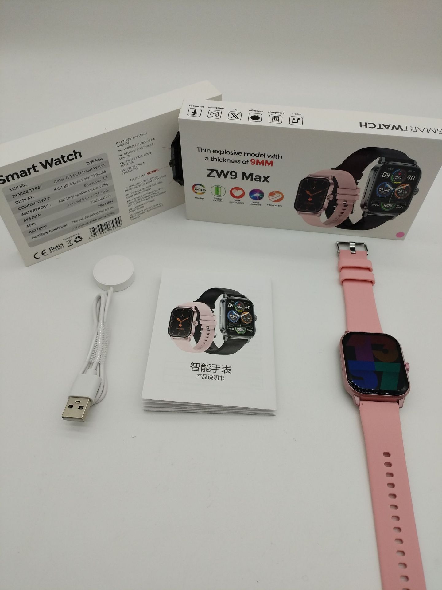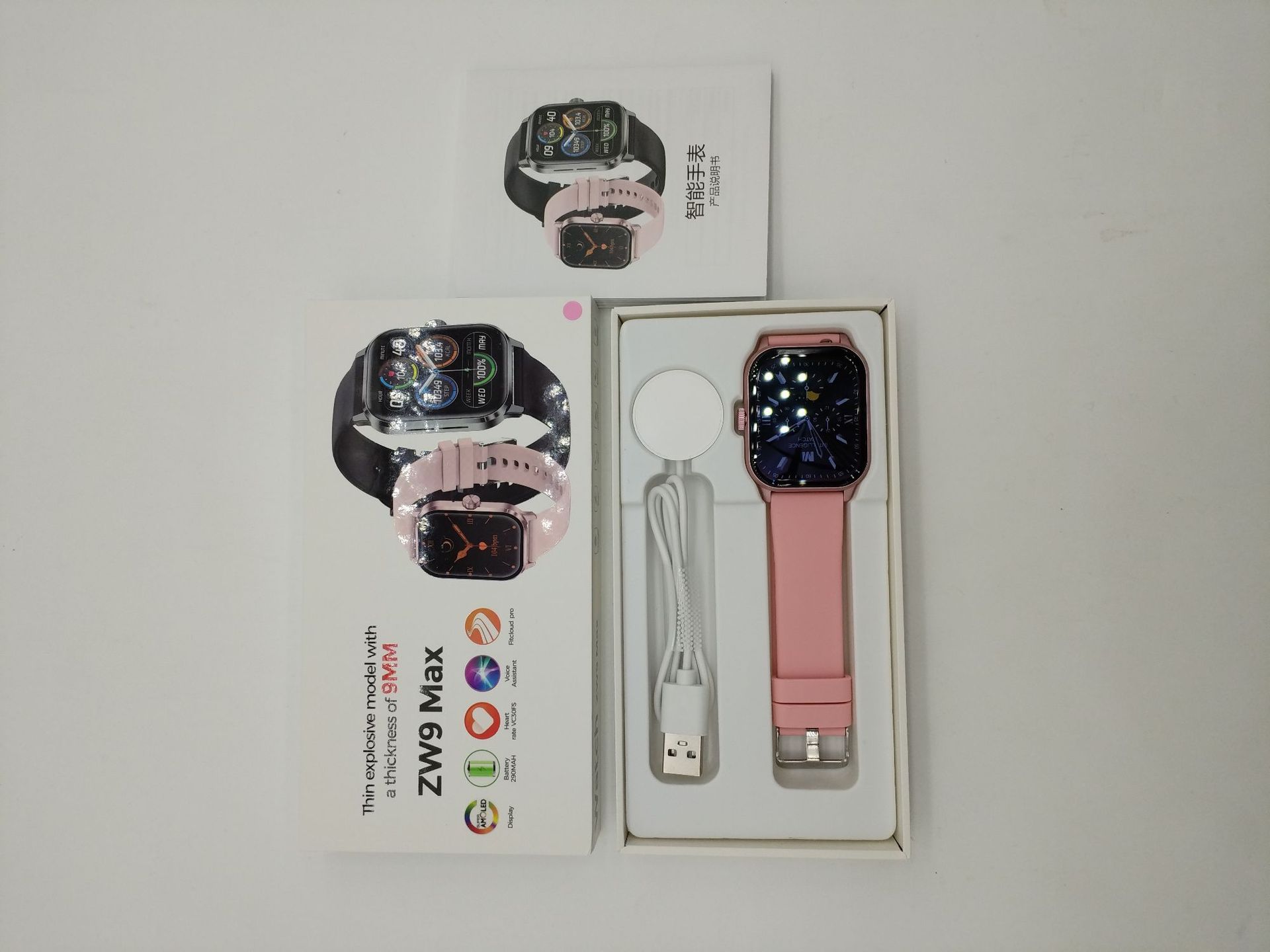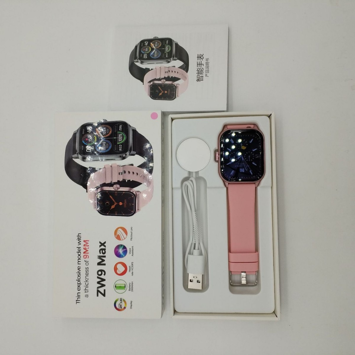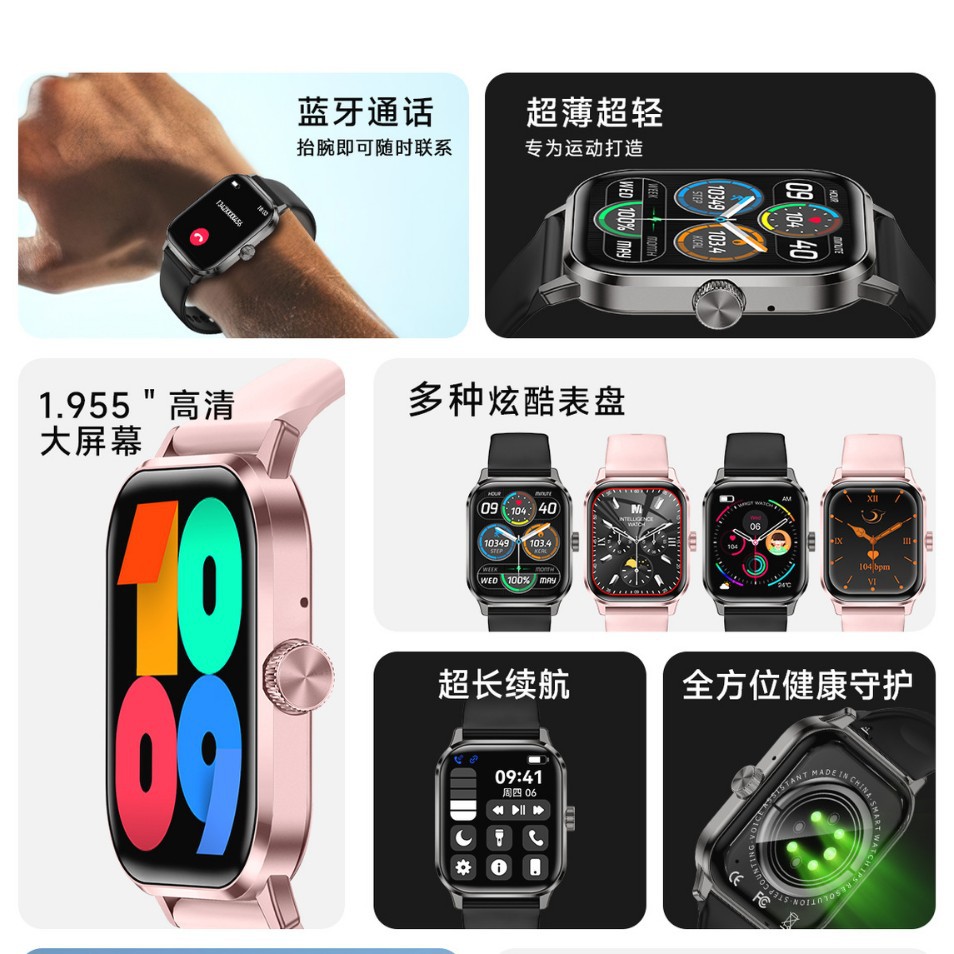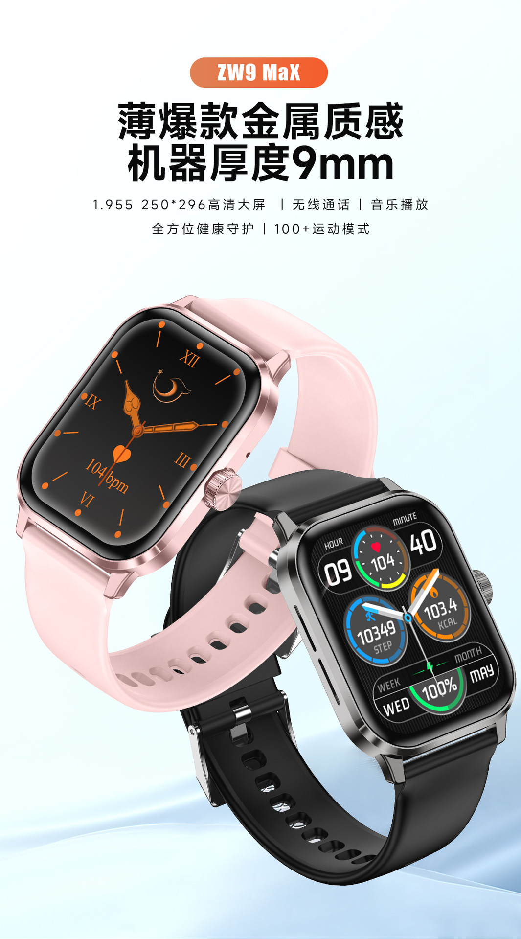 Cross-border new ZW9Max smart watch with Bluetooth calling, IP67 water resistance, heart rate and sleep health monitoring, lightweight and slim design