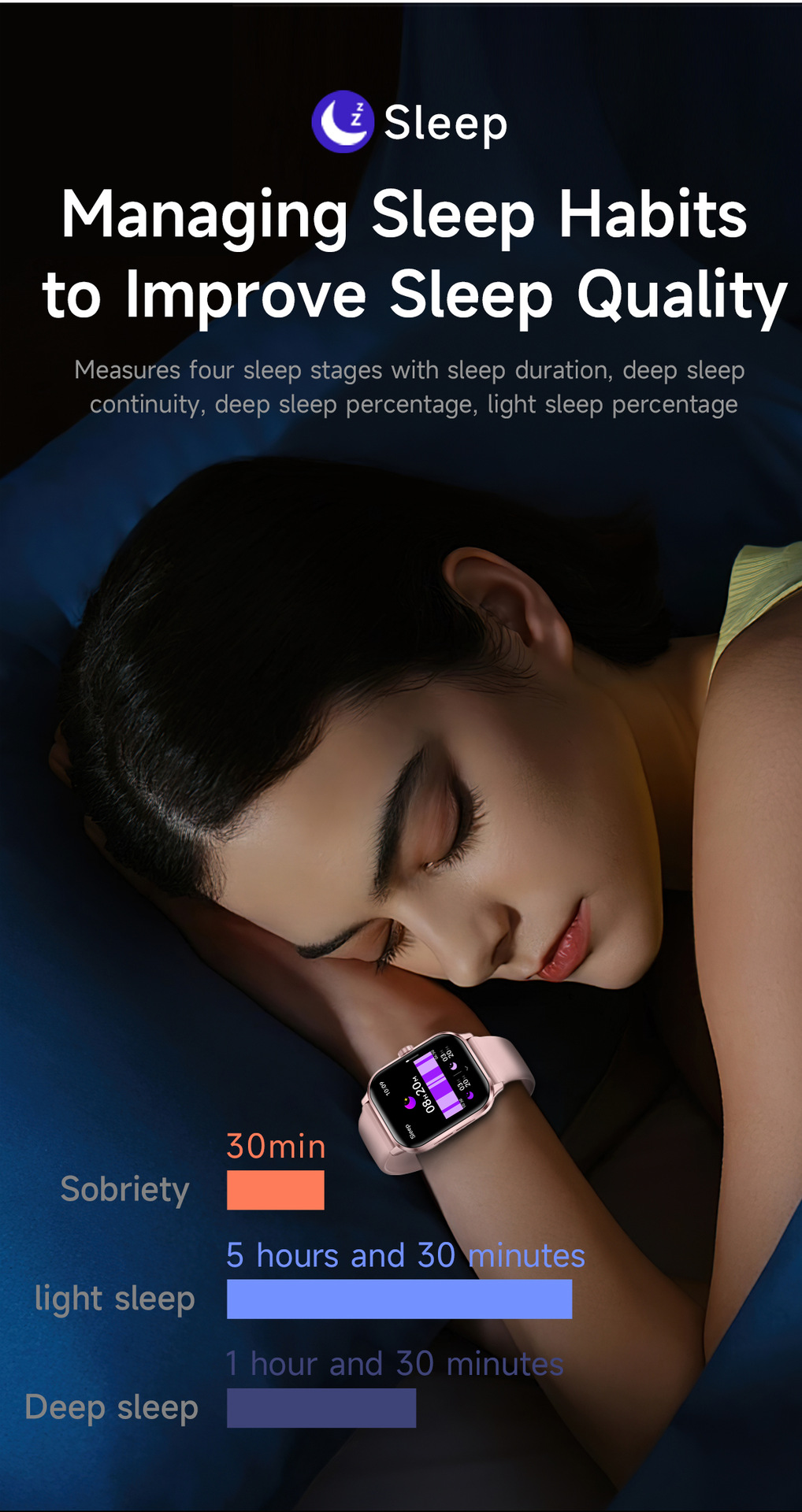 Heart rate, electrocardiogram, blood oxygen, temperature, music player, exercise, sleep, QR code addition, long sitting, drinking water reminder, information push, voice assistant, calculator, calendar, alarm clock, call setting, timer, stopwatch, games, breathing, weather, password lock screen function, find mobile phone, split-screen UI, GPS track.