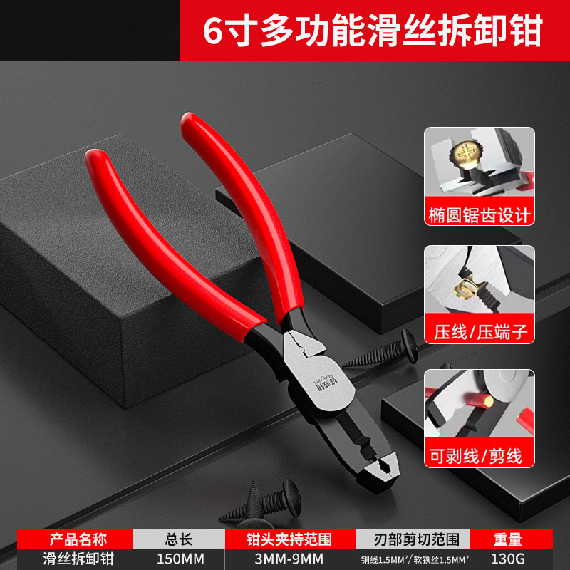 【旗舰椭圆防滑款】6寸滑牙螺丝取出钳-多功能